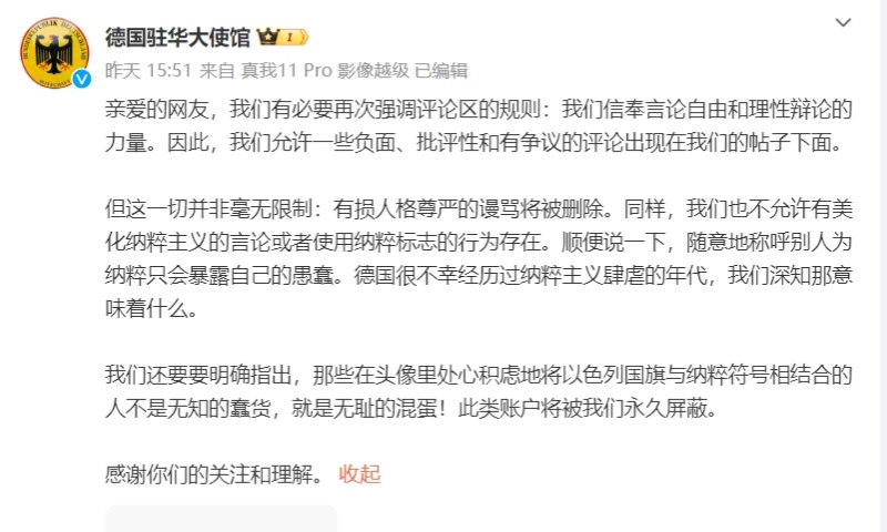 24 ΠΎΠΊΡΡΠ±ΡΡ ΠΏΠΎΡΠΎΠ»ΡΡΡΠ²ΠΎ ΠΠ΅ΡΠΌΠ°Π½ΠΈΠΈ Π² ΠΠΈΡΠ°Π΅ ΠΎΠΏΡΠ±Π»ΠΈΠΊΠΎΠ²Π°Π»ΠΎ ΠΎΡΠΈΡΠΈΠ°Π»ΡΠ½ΠΎΠ΅ Π·Π°ΡΠ²Π»Π΅Π½ΠΈΠ΅ Π½Π° ΠΏΠ»Π°ΡΡΠΎΡΠΌΠ΅ ΠΌΠΈΠΊΡΠΎΠ±Π»ΠΎΠ³ΠΎΠ² Weibo, ΠΊΠ°ΡΠ°ΡΡΠ΅Π΅ΡΡ ΠΏΠ°Π»Π΅ΡΡΠΈΠ½ΠΎ-ΠΈΠ·ΡΠ°ΠΈΠ»ΡΡΠΊΠΎΠ³ΠΎ ΠΊΠΎΠ½ΡΠ»ΠΈΠΊΡΠ°.