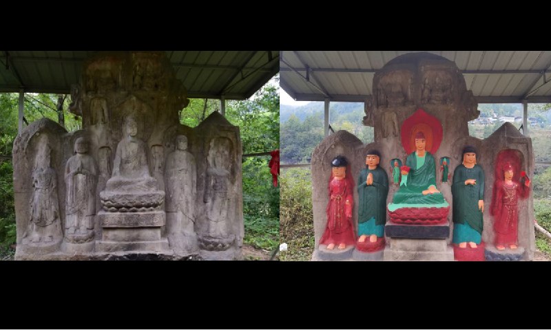 Статую Будды Шифэйхэ раскрасили в городе Бачжун (провинция Сычуань). Высеченная фигура Будды Шифэйхэ была создана в эпоху Южных и Северных династий (420–589 гг.), сейчас ей более 1400 лет.