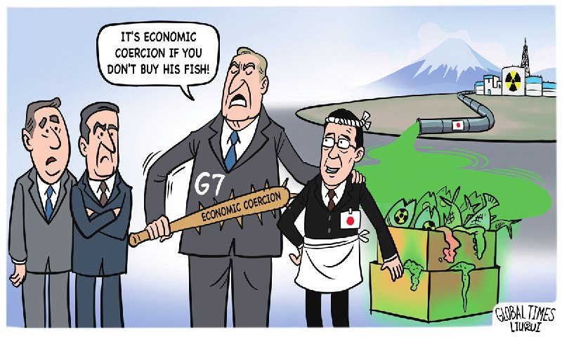 Китайская правительственная газета Global Times оценила тезис G7 об «экономическом принуждении» с сарказмом. В статье звучит призыв не политизировать вопрос с импортом морепродуктов из Японии.