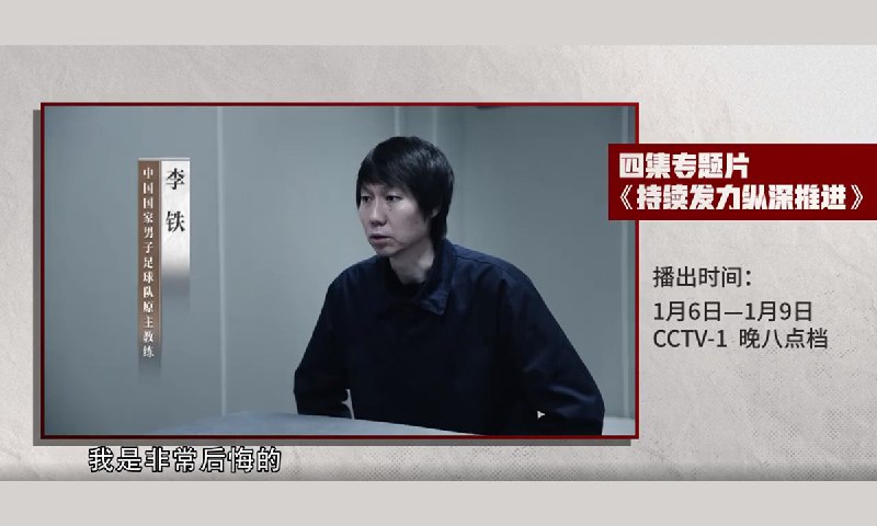 Π’ эфирС CCTV Π²Ρ‹ΡˆΠ΅Π» чСтырСхсСрийный Π΄ΠΎΠΊΡƒΠΌΠ΅Π½Ρ‚Π°Π»ΡŒΠ½Ρ‹ΠΉ Ρ„ΠΈΠ»ΡŒΠΌ, посвящСнный Π±ΠΎΡ€ΡŒΠ±Π΅ с ΠΊΠΎΡ€Ρ€ΡƒΠΏΡ†ΠΈΠ΅ΠΉ Β«ΠŸΡ€ΠΎΠ΄ΠΎΠ»ΠΆΠ°Ρ усилия, углубляя прогрСсс» (ζŒη»­ε‘εŠ› ηΊ΅ζ·±ζŽ¨θΏ›). Π’ послСднСм эпизодС, Π²Ρ‹ΡˆΠ΅Π΄ΡˆΠ΅ΠΌ 9 января, Π±Ρ‹Π²ΡˆΠΈΠΉ Π³Π»Π°Π²Π½Ρ‹ΠΉ Ρ‚Ρ€Π΅Π½Π΅Ρ€ муТской сборной ΠšΠΈΡ‚Π°Ρ ΠΏΠΎ Ρ„ΡƒΡ‚Π±ΠΎΠ»Ρƒ Π›ΠΈ Π’Π΅ раскрыл подробности своих прСступлСний.