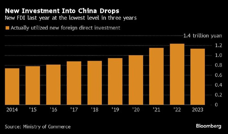ΠΡΡΠΌΡΠ΅ ΠΈΠ½ΠΎΡΡΡΠ°Π½Π½ΡΠ΅ ΠΈΠ½Π²Π΅ΡΡΠΈΡΠΈΠΈ Π² ΠΠΈΡΠ°ΠΉ Π² 2023 Π³ΠΎΠ΄Ρ ΡΠΎΠΊΡΠ°ΡΠΈΠ»ΠΈΡΡ Π½Π° 8%