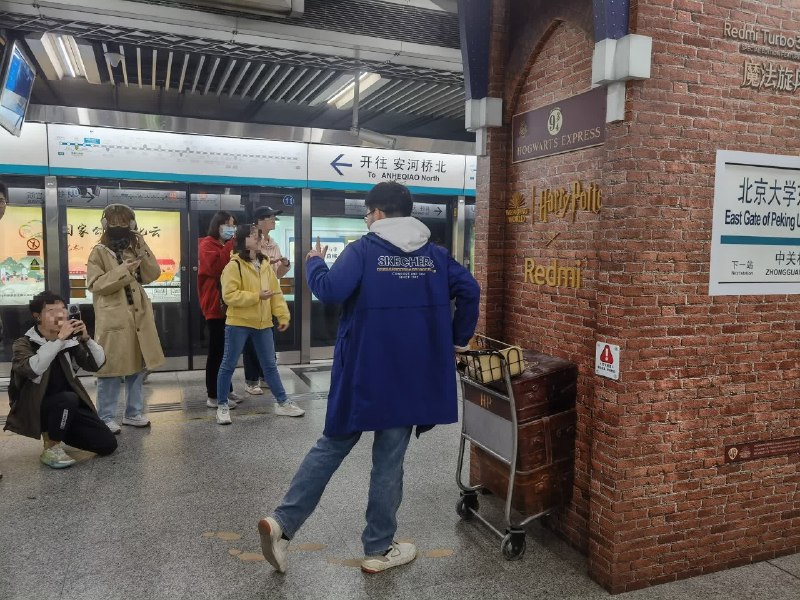 9 апреля на станции метро «Восточные ворота Пекинского университета» (北京大学东门站, линия 4) появилась фотозона в стиле «Платформы 9¾» из книги о Гарри Поттере. Она включает кирпичную стену и как бы уходящую в нее багажную тележку.