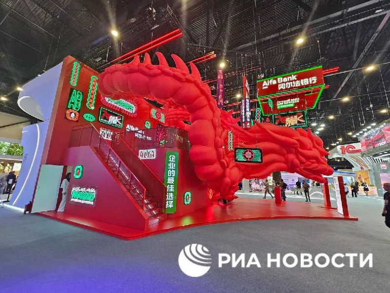 Π£ΡΠ°ΡΡΠ½ΠΈΠΊΠΎΠ² ΡΠΎΡΡΠΌΠ° ΠΏΡΠΈΠ²Π΅ΡΡΡΠ²ΡΠ΅Ρ ΠΊΡΠ°ΡΠ½ΡΠΉ Π΄ΡΠ°ΠΊΠΎΠ½ ΠΈ Π½Π°Π΄ΠΏΠΈΡΠΈ Π½Π° ΠΊΠΈΡΠ°ΠΉΡΠΊΠΎΠΌ: Β«ΠΡΡΡΠΈΠΉ Π±Π°Π½ΠΊ Π΄Π»Ρ Π±ΠΈΠ·Π½Π΅ΡΠ°Β», Β«ΠΠ»ΡΡΠ°-Π±Π°Π½ΠΊΒ».