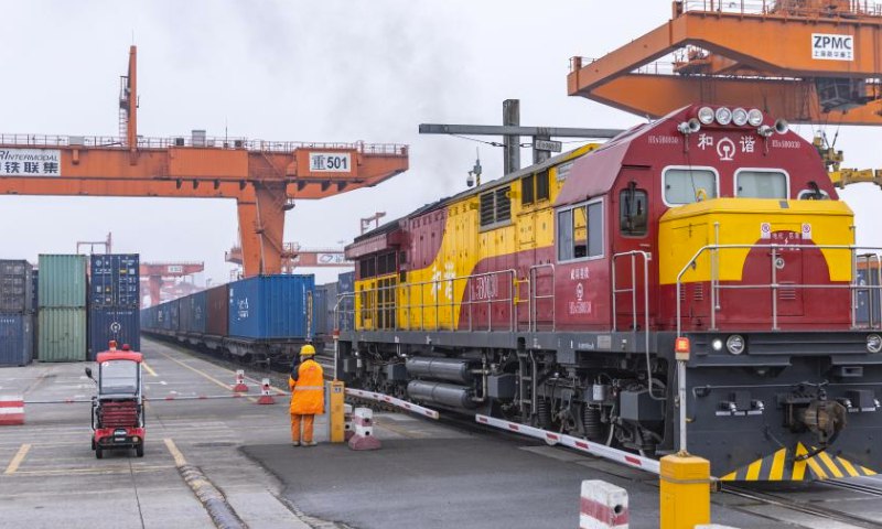 Грузовой поезд отправился из логистического узла в районе Пингу на северо-востоке Пекина в Москву. Он везет строительные материалы, бытовую электронику и другие товары.