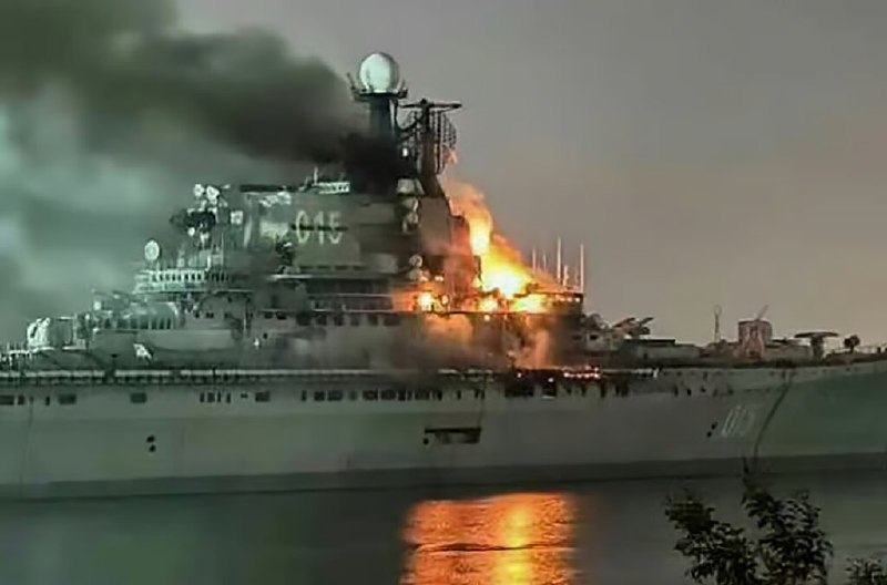 Согласно опубликованным в интернете изображениям, 17 августа надпалубные сооружения частично обрушились. Воздуховоды на внешней стороне палубы почернели. Это указывает на то, что внутренние помещения авианосца также горели. Из чего эксперты делают вывод, что крейсер, скорее всего, не подлежит ремонту.