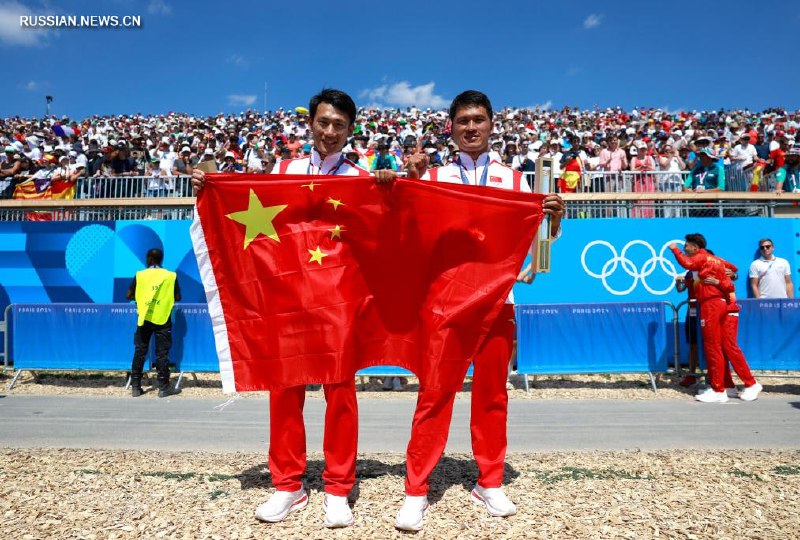 ●Спортсмены из Китая Лю Хао и Цзи Бовэнь выиграли золотые медали в соревнованиях каноэ-двоек на дистанции 500 м.