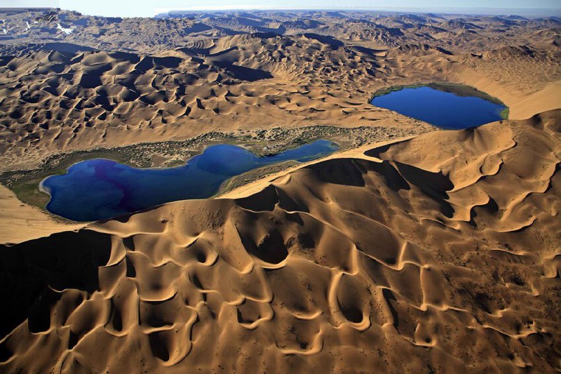 Здесь также расположена самая высокая концентрация междюнных озер — более 100. Они дали пустыне название, которое по-монгольски означает «таинственные озера».