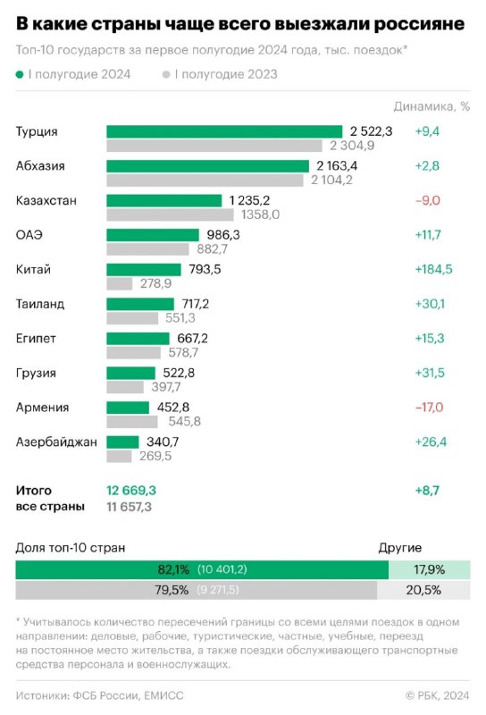 Среди стран, из которых в первом полугодии чаще всего въезжали в Россию, первые пять позиций заняли Узбекистан, Казахстан, Таджикистан, Китай и Киргизия. Причем въездной турпоток из Китая также значительно вырос — в 2,7 раза.