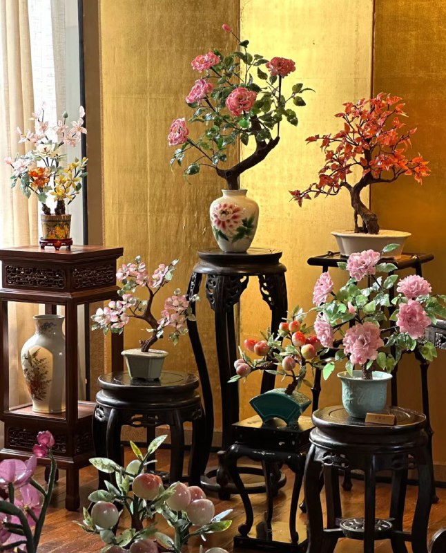 Π Π¨Π°Π½Ρ Π°Π΅ ΠΎΡΠΊΡΡΠ»Π°ΡΡ Π²ΡΡΡΠ°Π²ΠΊΠ° ΠΌΠΈΠ½ΠΈΠ°ΡΡΡΠ½ΡΡ Π΄Π΅ΡΠ΅Π²ΡΠ΅Π² ΠΈΠ· Π΄ΡΠ°Π³ΠΎΡΠ΅Π½Π½ΡΡ ΠΊΠ°ΠΌΠ½Π΅ΠΉ. Π’Π°ΠΊΠΈΠ΅ Π²Π΅ΡΠ½ΠΎΠ·Π΅Π»Π΅Π½ΡΠ΅ Π΄ΡΠ°Π³ΠΎΡΠ΅Π½Π½ΡΠ΅ ΠΏΡΠ½ΡΡΠ·ΠΈΠ½ΠΈ (ηζ―), ΠΆΠΈΠ²ΡΠ΅ Π²Π΅ΡΡΠΈΠΈ ΠΊΠΎΡΠΎΡΡΡ Π±ΡΠ»ΠΈ ΠΏΠΎΠ·Π°ΠΈΠΌΡΡΠ²ΠΎΠ²Π°Π½Ρ ΡΠΏΠΎΠ½ΡΠ°ΠΌΠΈ ΠΏΠΎΠ΄ Π½Π°Π·Π²Π°Π½ΠΈΠ΅ΠΌ Π±ΠΎΠ½ΡΠ°ΠΉ, Π±ΡΠ»ΠΈ ΠΎΡΠ΅Π½Ρ ΠΏΠΎΠΏΡΠ»ΡΡΠ½Ρ Π²ΠΎ Π΄Π²ΠΎΡΡΠ°Ρ Π΄ΡΠ΅Π²Π½Π΅Π³ΠΎ ΠΠΈΡΠ°Ρ.