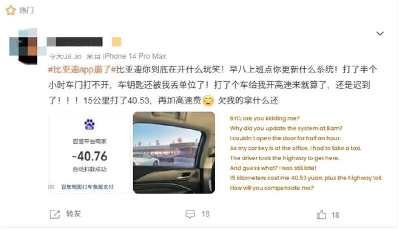 ΠΡΠΎΠ±Π»Π΅ΠΌΡ Π½Π°Π±Π»ΡΠ΄Π°Π»ΠΈΡΡ Π² ΡΠ΄Π°Π»Π΅Π½Π½ΠΎΠΉ ΡΠ°Π·Π±Π»ΠΎΠΊΠΈΡΠΎΠ²ΠΊΠ΅, Π³ΠΎΠ»ΠΎΡΠΎΠ²ΠΎΠΉ Π°ΠΊΡΠΈΠ²Π°ΡΠΈΠΈ ΠΈ ΠΏΠΎΠ΄ΠΊΠ»ΡΡΠ΅Π½ΠΈΠΈ ΠΊ ΠΈΠ½ΡΠ΅ΡΠ½Π΅ΡΡ. ΠΡΠ΅Π΄ΡΡΠ°Π²ΠΈΡΠ΅Π»Ρ ΡΠ»ΡΠΆΠ±Ρ ΠΏΠΎΠ΄Π΄Π΅ΡΠΆΠΊΠΈ ΠΊΠ»ΠΈΠ΅Π½ΡΠΎΠ² BYD ΡΠΎΠΎΠ±ΡΠΈΠ», ΡΡΠΎ ΠΏΡΠΎΠΈΠ·ΠΎΡΠ΅Π» ΡΠ±ΠΎΠΉ Π² ΠΎΠ±ΡΠ»ΡΠΆΠΈΠ²Π°Π½ΠΈΠΈ, Π½ΠΎ ΠΎΠ½ Π±ΡΠ» Π±ΡΡΡΡΠΎ ΡΡΡΡΠ°Π½Π΅Π½. ΠΠΎ Π΄Π°Π½Π½ΡΠΌ Π½ΠΎΠ²ΠΎΡΡΠ½ΠΎΠ³ΠΎ ΠΏΠΎΡΡΠ°Π»Π° ThePaper, ΠΏΡΠΈΡΠΈΠ½ΠΎΠΉ ΡΡΠ°Π» ΡΠ±ΠΎΠΉ Π² ΡΠΈΡΡΠ΅ΠΌΠ΅ ΠΎΠ±Π»Π°ΡΠ½ΠΎΠ³ΠΎ ΡΠ΅ΡΠ²ΠΈΡΠ°.
