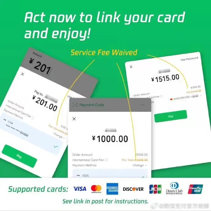 ΠΡΠΎΠΌΠ΅ ΡΠΎΠ³ΠΎ, Π²ΡΠ΅ ΠΊΠ»ΠΈΠ΅Π½ΡΡ WeChat Pay, ΠΈΡΠΏΠΎΠ»ΡΠ·ΡΡΡΠΈΠ΅ ΠΈΠ½ΠΎΡΡΡΠ°Π½Π½ΡΠ΅ ΠΊΠ°ΡΡΡ Π² ΠΠΈΡΠ°Π΅, ΠΎΡΠ²ΠΎΠ±ΠΎΠΆΠ΄Π°ΡΡΡΡ ΠΎΡ ΠΊΠΎΠΌΠΈΡΡΠΈΠΈ 3% Π½Π° Π»ΡΠ±ΡΡ ΠΏΠΎΠΊΡΠΏΠΊΡ Π΄ΠΎ 200 ΡΠ°Π½Π΅ΠΉ.