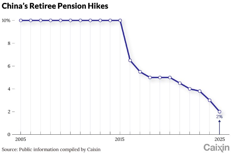 Π 2025 Π³ΠΎΠ΄Ρ ΠΠΈΡΠ°ΠΉ ΡΠ²Π΅Π»ΠΈΡΠΈΡ Π±Π°Π·ΠΎΠ²ΡΠ΅ ΠΏΠ΅Π½ΡΠΈΠΎΠ½Π½ΡΠ΅ Π²ΡΠΏΠ»Π°ΡΡ Π½Π° 2%, ΡΡΠΎ ΡΡΠ°Π½Π΅Ρ ΡΠ°ΠΌΡΠΌ ΠΌΠ΅Π΄Π»Π΅Π½Π½ΡΠΌ ΡΠ΅ΠΌΠΏΠΎΠΌ ΡΠΎΡΡΠ° Π·Π° Π²ΡΡ ΠΈΡΡΠΎΡΠΈΡ.