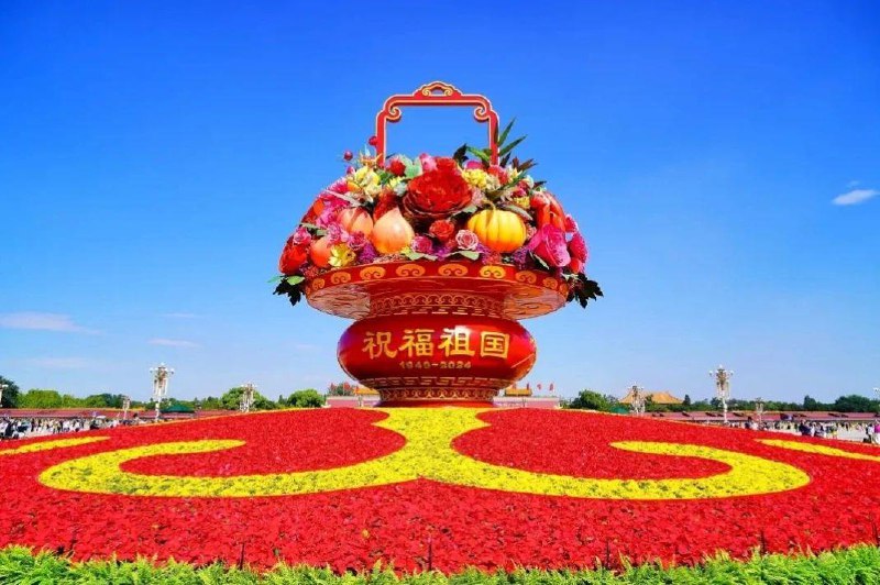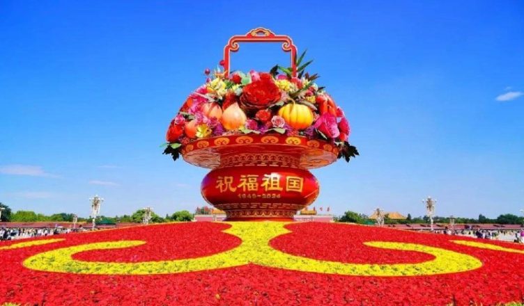 1 октября отмечается День образования КНР. Каждый год большая цветочная корзина украшает площадь Тяньаньмэнь в Пекине в дни празднования.