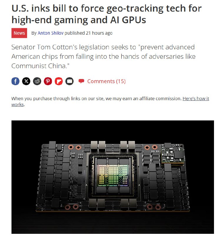 Π Π‘Π¨Π ΡΠ°ΡΡΠΌΠ°ΡΡΠΈΠ²Π°ΡΡ Π·Π°ΠΊΠΎΠ½, ΠΎΠ±ΡΠ·ΡΠ²Π°ΡΡΠΈΠΉ ΠΏΡΠΎΠΈΠ·Π²ΠΎΠ΄ΠΈΡΠ΅Π»Π΅ΠΉ ΠΏΡΠΎΡΠ΅ΡΡΠΎΡΠΎΠ² ΠΈ Π²ΠΈΠ΄Π΅ΠΎΠΊΠ°ΡΡ ΠΎΡΡΠ»Π΅ΠΆΠΈΠ²Π°ΡΡ ΡΡΡΡΠΎΠΉΡΡΠ²Π° ΠΏΠΎ Π³Π΅ΠΎΠ»ΠΎΠΊΠ°ΡΠΈΠΈ ΠΈ Π±Π»ΠΎΠΊΠΈΡΠΎΠ²Π°ΡΡ ΠΈΡ ΡΠ°Π±ΠΎΡΡ Π² Β«Π½Π΅Π΄ΡΡΠΆΠ΅ΡΡΠ²Π΅Π½Π½ΡΡ ΡΡΡΠ°Π½Π°Ρ Β». ΠΡΠΎΡ Π·Π°ΠΊΠΎΠ½ ΠΎΠ±ΡΠΆΠ΅Ρ AMD, Intel ΠΈ Nvidia ΠΎΡΠΊΠ»ΡΡΠ°ΡΡ Π²ΡΡΠΎΠΊΠΎΠΏΡΠΎΠΈΠ·Π²ΠΎΠ΄ΠΈΡΠ΅Π»ΡΠ½ΡΠ΅ ΠΏΠ»Π°ΡΡ, Π² ΡΠΎΠΌ ΡΠΈΡΠ»Π΅ ΠΈΡΠΏΠΎΠ»ΡΠ·ΡΡΡΠΈΠ΅ΡΡ Π΄Π»Ρ ΡΠ°Π·ΡΠ°Π±ΠΎΡΠΊΠΈ ΠΠ-ΠΌΠΎΠ΄Π΅Π»Π΅ΠΉ, ΡΡΠΎΠ±Ρ Β«ΠΏΡΠ΅Π΄ΠΎΡΠ²ΡΠ°ΡΠΈΡΡ ΠΏΠΎΠΏΠ°Π΄Π°Π½ΠΈΠ΅ ΠΏΠ΅ΡΠ΅Π΄ΠΎΠ²ΡΡ Π°ΠΌΠ΅ΡΠΈΠΊΠ°Π½ΡΠΊΠΈΡ ΡΠΈΠΏΠΎΠ² Π² ΡΡΠΊΠΈ ΡΠ°ΠΊΠΈΡ ΠΏΡΠΎΡΠΈΠ²Π½ΠΈΠΊΠΎΠ², ΠΊΠ°ΠΊ ΠΊΠΎΠΌΠΌΡΠ½ΠΈΡΡΠΈΡΠ΅ΡΠΊΠΈΠΉ ΠΠΈΡΠ°ΠΉΒ», β ΡΠ»Π΅Π΄ΡΠ΅Ρ ΠΈΠ· ΠΏΠΎΡΡΠ½ΠΈΡΠ΅Π»ΡΠ½ΠΎΠΉ Π·Π°ΠΏΠΈΡΠΊΠΈ ΡΠ΅Π½Π°ΡΠΎΡΠ° Π’ΠΎΠΌΠ° ΠΠΎΡΡΠΎΠ½Π°.