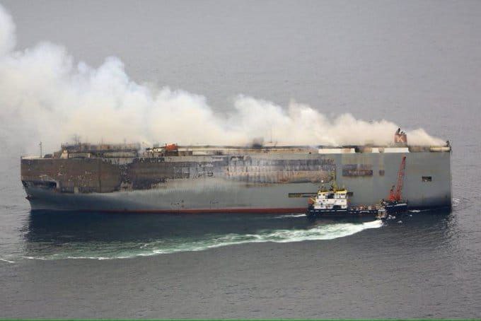 Π‘ΡΠ΄Π½ΠΎ Ρ 800 ΡΠ»Π΅ΠΊΡΡΠΎΠΌΠΎΠ±ΠΈΠ»ΡΠΌΠΈ Π³ΠΎΡΠΈΡ Ρ Π±Π΅ΡΠ΅Π³ΠΎΠ² ΠΠ»ΡΡΠΊΠΈ. Morning Midas ΠΏΠ΅ΡΠ΅Π²ΠΎΠ·ΠΈΠ» ΠΌΠ°ΡΠΈΠ½Ρ ΠΈΠ· ΠΠΈΡΠ°Ρ Π² ΠΠ΅ΠΊΡΠΈΠΊΡ, ΠΏΠΎΡΠ»Π΅ Π²ΠΎΠ·Π³ΠΎΡΠ°Π½ΠΈΡ Π²ΠΎ Π²ΡΠΎΡΠ½ΠΈΠΊ ΡΠΊΠΈΠΏΠ°ΠΆ ΠΏΠΎΠΊΠΈΠ½ΡΠ» Π³ΠΎΡΡΡΠ΅Π΅ ΡΡΠ΄Π½ΠΎ, ΠΊΠΎΡΠΎΡΠΎΠ΅ ΠΎΡΡΠ°Π»ΠΎΡΡ Π΄ΡΠ΅ΠΉΡΠΎΠ²Π°ΡΡ Π² Π’ΠΈΡ ΠΎΠΌ ΠΎΠΊΠ΅Π°Π½Π΅. Π‘Π΅ΠΉΡΠ°Ρ Π°Π²ΡΠΎΠ²ΠΎΠ· ΡΡΡΠΈΡ Π±Π΅ΡΠ΅Π³ΠΎΠ²Π°Ρ ΠΎΡ ΡΠ°Π½Π° Π‘Π¨Π.