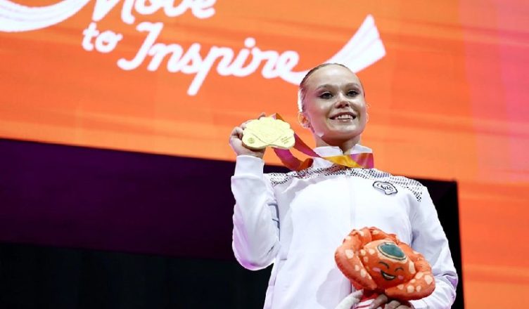 Π’ΡΠΈ Π½Π°Π³ΡΠ°Π΄Ρ Π·Π°Π²ΠΎΠ΅Π²Π°Π»Π° Π½Π° Π·Π°Π²Π΅ΡΡΠΈΠ²ΡΠ΅ΠΌΡΡ ΡΠ΅Π³ΠΎΠ΄Π½Ρ ΡΠ΅ΠΌΠΏΠΈΠΎΠ½Π°ΡΠ΅ ΠΌΠΈΡΠ° ΠΏΠΎ ΡΠΏΠΎΡΡΠΈΠ²Π½ΠΎΠΉ Π³ΠΈΠΌΠ½Π°ΡΡΠΈΠΊΠ΅ Π² ΠΠ½Π΄ΠΎΠ½Π΅Π·ΠΈΠΈ ΠΠ½Π³Π΅Π»ΠΈΠ½Π° ΠΠ΅Π»ΡΠ½ΠΈΠΊΠΎΠ²Π°: Π·ΠΎΠ»ΠΎΡΠΎ Π² ΠΌΠ½ΠΎΠ³ΠΎΠ±ΠΎΡΡΠ΅ ΠΈ ΠΎΠΏΠΎΡΠ½ΠΎΠΌ ΠΏΡΡΠΆΠΊΠ΅, Π° ΡΠ°ΠΊΠΆΠ΅ ΡΠ΅ΡΠ΅Π±ΡΠΎ Π² ΡΠΏΡΠ°ΠΆΠ½Π΅Π½ΠΈΡΡ Π½Π° Π±ΡΡΡΡΡΡ . ΠΡΠΎΠ½Π·Π° Π² ΡΠΏΡΠ°ΠΆΠ½Π΅Π½ΠΈΡΡ Π½Π° Π±ΡΡΡΡΡΡ Π΄ΠΎΡΡΠ°Π»Π°ΡΡ ΠΠ°Π½ΠΈΠ΅Π»Ρ ΠΠ°ΡΠΈΠ½ΠΎΠ²Ρ.