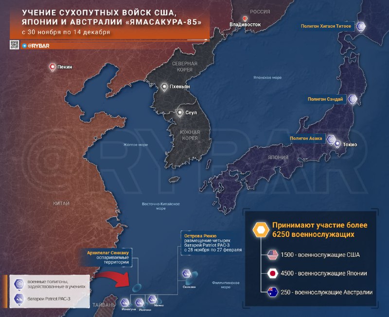 ❗️И это не всё: на днях японские власти закрыли воздушное пространство над группой островов Рюкю северо-восточнее Тайваня до 27 февраля следующего года, разместив четыре батареи ЗРК Patriot PAC-3.