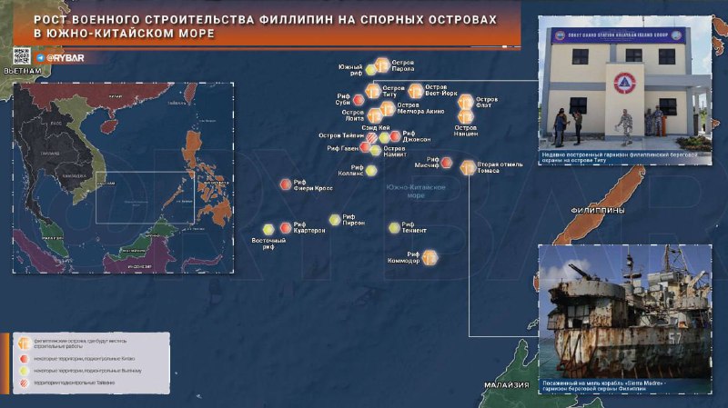 📌 Масштабное строительство однозначно вызовет негативную реакцию со стороны Китая, претендующего на территории. По всей видимости, в процессе работ китайская сторона будет всячески мешать филиппинцам особенно на фоне того, как часто она преследует и изгоняет из акватории филиппинских рыбаков. Так что градус напряжения в Южно-Китайском море будет только расти.