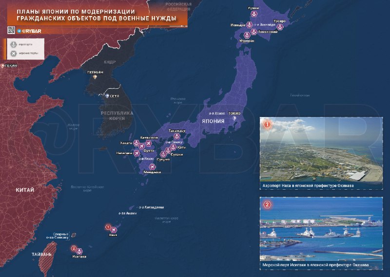 📌Примечательно, что половина объектов находится в префектуре Окинава и на юго-западном острове Кюсю. Именно они расположены ближе всего к Тайваню и островам Сенкаку, контроль над которыми оспаривают как Япония, так и Китай.