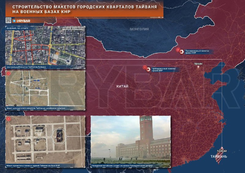 🔻Однако это далеко не первый раз, когда в Поднебесной возводят подобные объекты. Например, в 2015 году местные СМИ распространяли видео учений, где военнослужащие НОАК атаковали копию Президентского дворца все в том же Тайбэе. Тогда они проходили на другом полигоне также во Внутренней Монголии.