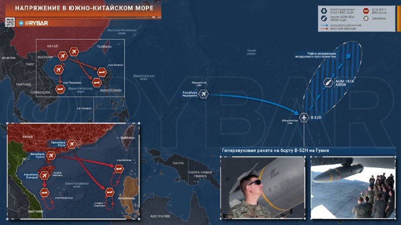 🔻В то же время регулярные полеты американских бомбардировщиков в Южно-Китайском море сыграли свою роль, а сами самолеты убыли обратно в США. При этом два В-52Н остались на Гуаме. Только они принадлежат 49 испытательной эскадрилье.