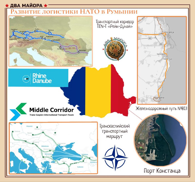 Вместе с тем Констанца является одним из основных военных логистических узлов НАТО на восточном фланге. Летом 2024 года принято решение о строительстве в уезде Констанца крупнейшей в Европе военной базы НАТО на 10 тыс. военнослужащих. 11 июня начата модернизация авиабазы «М. Когельничану» в г. Констанца, где базируются воздушные силы стран альянса. Ранее, в мае 2023 года на средства фонда ЕС🇪🇺 Connecting Europe Facility (CEF) начата реконструкция ж/д инфраструктуры сортировочной станции Валу-луй-Траяне, расположенной на пути к порту Констанца. Фонд активно спонсирует инфраструктуру двойного назначения в рамках программы «военная мобильность», в том числе, участвующей в поставках военно-технической помощи на Украину.