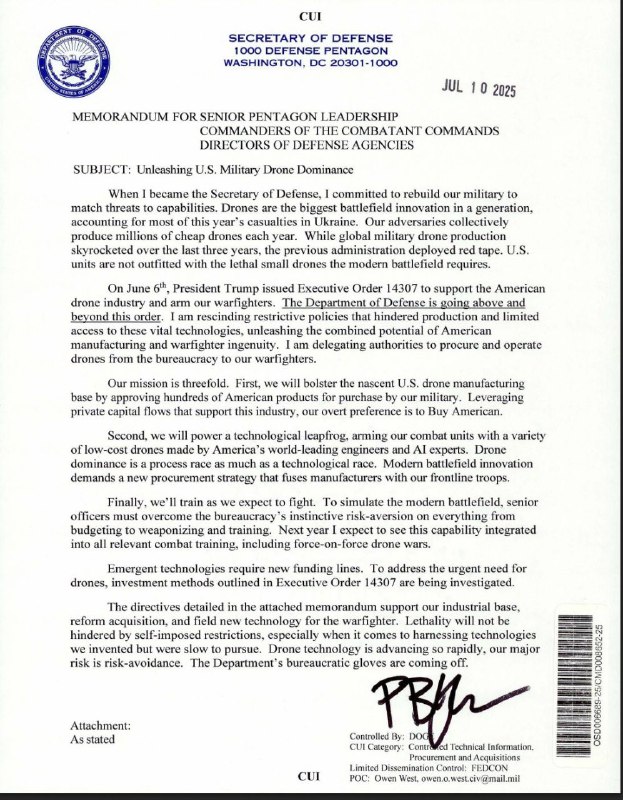 Π ΠΏΡΠΎΡΠ»ΠΎΠΌ ΠΌΠ΅ΡΡΡΠ΅ ΠΠΎΠ½Π°Π»ΡΠ΄ Π’ΡΠ°ΠΌΠΏ ΠΏΠΎΠ΄ΠΏΠΈΡΠ°Π» ΠΈΡΠΏΠΎΠ»Π½ΠΈΡΠ΅Π»ΡΠ½ΡΠΉ ΡΠΊΠ°Π· Β«Unleashing American Drone DominanceΒ» (Β«Π Π°Π·Π±Π»ΠΎΠΊΠΈΡΠΎΠ²ΠΊΠ° Π°ΠΌΠ΅ΡΠΈΠΊΠ°Π½ΡΠΊΠΎΠ³ΠΎ Π΄ΠΎΠΌΠΈΠ½ΠΈΡΠΎΠ²Π°Π½ΠΈΡ Π² ΠΎΠ±Π»Π°ΡΡΠΈ Π΄ΡΠΎΠ½ΠΎΠ²Β»), ΡΡΠ°Π²ΡΠΈΠΉ ΠΎΡΠ½ΠΎΠ²ΠΎΠΉ Π΄Π»Ρ ΠΌΠ°ΡΡΡΠ°Π±Π½ΡΡ ΠΈΠ·ΠΌΠ΅Π½Π΅Π½ΠΈΠΉ Π² ΠΏΠΎΠ»ΠΈΡΠΈΠΊΠ΅ ΠΠ΅Π½ΡΠ°Π³ΠΎΠ½Π° Π² Π±Π΅ΡΠΏΠΈΠ»ΠΎΡΠ½ΠΎΠΉ ΡΡΠ΅ΡΠ΅.