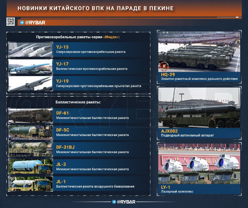 βͺοΈΠΠΈΡΠ°ΠΉΡΡ Π²ΠΏΠ΅ΡΠ²ΡΠ΅ ΠΏΡΠ±Π»ΠΈΡΠ½ΠΎ ΠΏΡΠΎΠ΄Π΅ΠΌΠΎΠ½ΡΡΡΠΈΡΠΎΠ²Π°Π»ΠΈ Π² ΠΎΠ΄Π½ΠΎΠΌ ΠΌΠ΅ΡΡΠ΅ Π²ΡΠ΅ ΠΊΠΎΠΌΠΏΠΎΠ½Π΅Π½ΡΡ ΡΠ΄Π΅ΡΠ½ΠΎΠΉ ΡΡΠΈΠ°Π΄Ρ Π² Π»ΠΈΡΠ΅ ΡΠ°ΠΊΠ΅Ρ ΠΌΠΎΡΡΠΊΠΎΠ³ΠΎ (JL-3), Π½Π°Π·Π΅ΠΌΠ½ΠΎΠ³ΠΎ (DF-31/DF-61) ΠΈ Π²ΠΎΠ·Π΄ΡΡΠ½ΠΎΠ³ΠΎ (JL-1) Π±Π°Π·ΠΈΡΠΎΠ²Π°Π½ΠΈΡ. ΠΡΠΎΠ±ΠΎΠ΅ Π²Π½ΠΈΠΌΠ°Π½ΠΈΠ΅ ΠΏΡΠΈΠ²Π»Π΅ΠΊΠ»Π° ΠΠΠ DF-5C Ρ ΡΠ°Π·Π΄Π΅Π»ΡΡΡΠΈΠΌΠΈΡΡ Π³ΠΎΠ»ΠΎΠ²Π½ΡΠΌΠΈ ΡΠ°ΡΡΡΠΌΠΈ, ΡΠΏΠΎΡΠΎΠ±Π½Π°Ρ ΠΏΠΎΡΠ°ΠΆΠ°ΡΡ Π΄ΠΎ 10 ΡΠ΅Π»Π΅ΠΉ ΠΏΠΎ Π²ΡΠ΅ΠΌΡ ΠΌΠΈΡΡ.