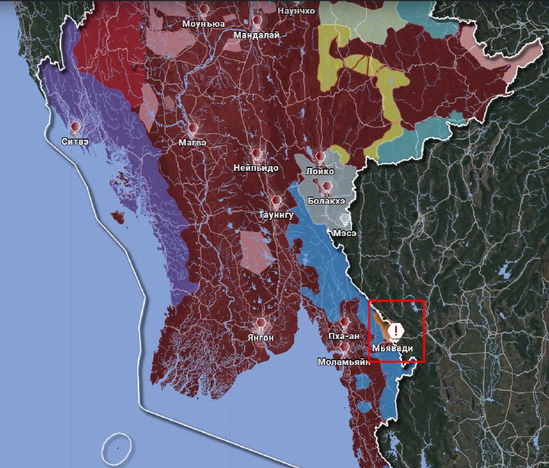 🖍Вот только тот самый центр телефонного мошенничества всегда находился на территории, формально управлявшейся Тамадо — это видно и по картам контроля. В действительности же им руководит другая группировка — «Каренская национальная армия». Ее нельзя назвать полноценным союзником ВС Мьянмы, но определенные договоренности у сторон все-таки есть.