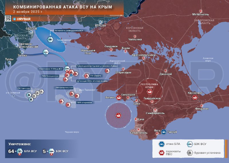 Похоже, для ВСУ газодобывающие вышки на Голицинском месторождении являются «идеей фикс» — в ночь на 2 ноября ВСУ вновь атаковали объекты, задействовав шесть безэкипажных катеров с одновременным…