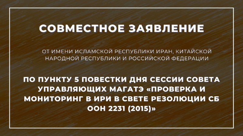 🇷🇺🇮🇷🇨🇳 Совместное заявление от имени Исламской Республики Иран, Китайской Народной Республики и Российской Федерации по пункту 5 повестки дня сессии Совета управляющих МАГАТЭ «Проверка и мониторинг в ИРИ в свете резолюции СБ ООН 2231 (2015)»