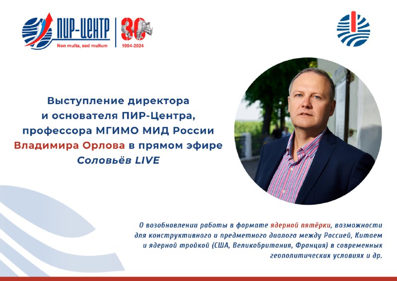 π ΠΠΈΡΠ΅ΠΊΡΠΎΡ ΠΈ ΠΎΡΠ½ΠΎΠ²Π°ΡΠ΅Π»Ρ ΠΠΠ -Π¦Π΅Π½ΡΡΠ°, ΠΏΡΠΎΡΠ΅ΡΡΠΎΡ ΠΠΠΠΠ ΠΠΠ Π ΠΎΡΡΠΈΠΈ ΠΠ»Π°Π΄ΠΈΠΌΠΈΡ ΠΡΠ»ΠΎΠ² Π²ΡΡΡΡΠΏΠΈΠ» Π² ΠΏΡΡΠΌΠΎΠΌ ΡΡΠΈΡΠ΅ ΠΏΡΠΎΠ³ΡΠ°ΠΌΠΌΡ Π‘ΠΎΠ»ΠΎΠ²ΡΡΠ² LIVE, Π³Π΄Π΅ ΠΎΠ±ΡΡΠ΄ΠΈΠ» Ρ ΠΠΌΠΈΡΡΠΈΠ΅ΠΌ ΠΠ²ΡΡΠ°ΡΡΠ΅Π²ΡΠΌ, ΠΏΡΠΎΡΠ΅ΡΡΠΎΡΠΎΠΌ ΠΊΠ°ΡΠ΅Π΄ΡΡ ΡΠ΅ΠΎΡΠΈΠΈ ΠΏΡΠ°Π²Π° ΠΈ Π³ΠΎΡΡΠ΄Π°ΡΡΡΠ²Π° Π Π£ΠΠ, ΡΠ»Π΅Π½ΠΎΠΌ ΡΠ΅Π΄ΠΊΠΎΠ»Π»Π΅Π³ΠΈΠΈ Π΅ΠΆΠ΅Π³ΠΎΠ΄Π½ΠΈΠΊΠ° Security Index Yearbook, Π²ΠΎΠ·ΠΎΠ±Π½ΠΎΠ²Π»Π΅Π½ΠΈΠ΅ ΡΠ°Π±ΠΎΡΡ Π² ΡΠΎΡΠΌΠ°ΡΠ΅ ΡΠ΄Π΅ΡΠ½ΠΎΠΉ ΠΏΡΡΡΡΠΊΠΈ, Π²ΠΎΠ·ΠΌΠΎΠΆΠ½ΠΎΡΡΠΈ Π΄Π»Ρ ΠΊΠΎΠ½ΡΡΡΡΠΊΡΠΈΠ²Π½ΠΎΠ³ΠΎ ΠΈ ΠΏΡΠ΅Π΄ΠΌΠ΅ΡΠ½ΠΎΠ³ΠΎ Π΄ΠΈΠ°Π»ΠΎΠ³Π° ΠΌΠ΅ΠΆΠ΄Ρ Π ΠΎΡΡΠΈΠ΅ΠΉ, ΠΠΈΡΠ°Π΅ΠΌ ΠΈ ΡΠ΄Π΅ΡΠ½ΠΎΠΉ ΡΡΠΎΠΉΠΊΠΎΠΉ (Π‘Π¨Π, ΠΠ΅Π»ΠΈΠΊΠΎΠ±ΡΠΈΡΠ°Π½ΠΈΡ, Π€ΡΠ°Π½ΡΠΈΡ) Π² ΡΠΎΠ²ΡΠ΅ΠΌΠ΅Π½Π½ΡΡ Π³Π΅ΠΎΠΏΠΎΠ»ΠΈΡΠΈΡΠ΅ΡΠΊΠΈΡ ΡΡΠ»ΠΎΠ²ΠΈΡΡ , Π° ΡΠ°ΠΊΠΆΠ΅ Π²ΠΎΠΏΡΠΎΡΡ ΠΈΠ½Π΄ΠΈΠΉΡΠΊΠΎΠΉ ΠΈ ΠΈΡΠ°Π½ΡΠΊΠΎΠΉ ΡΠ΄Π΅ΡΠ½ΠΎΠΉ ΠΏΠΎΠ»ΠΈΡΠΈΠΊΠΈ ΠΈ Π΄ΡΡΠ³ΠΈΠ΅ Π°ΠΊΡΡΠ°Π»ΡΠ½ΡΠ΅ ΡΠ΅ΠΌΡ.