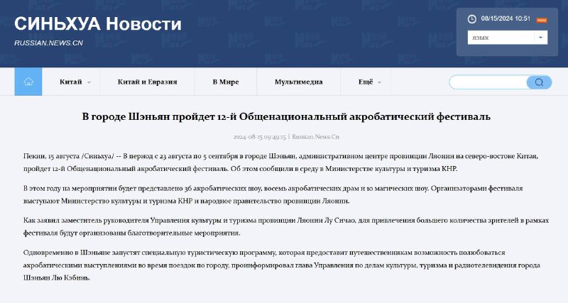 Π ΠΏΠ΅ΡΠΈΠΎΠ΄ Ρ 23 Π°Π²Π³ΡΡΡΠ° ΠΏΠΎ 5 ΡΠ΅Π½ΡΡΠ±ΡΡ Π² Π³ΠΎΡΠΎΠ΄Π΅ Π¨ΡΠ½ΡΡΠ½, Π°Π΄ΠΌΠΈΠ½ΠΈΡΡΡΠ°ΡΠΈΠ²Π½ΠΎΠΌ ΡΠ΅Π½ΡΡΠ΅ ΠΏΡΠΎΠ²ΠΈΠ½ΡΠΈΠΈ ΠΡΠΎΠ½ΠΈΠ½ Π½Π° ΡΠ΅Π²Π΅ΡΠΎ-Π²ΠΎΡΡΠΎΠΊΠ΅ ΠΠΈΡΠ°Ρ, ΠΏΡΠΎΠΉΠ΄Π΅Ρ 12-ΠΉ ΠΠ±ΡΠ΅Π½Π°ΡΠΈΠΎΠ½Π°Π»ΡΠ½ΡΠΉ Π°ΠΊΡΠΎΠ±Π°ΡΠΈΡΠ΅ΡΠΊΠΈΠΉ ΡΠ΅ΡΡΠΈΠ²Π°Π»Ρ. ΠΠ± ΡΡΠΎΠΌ ΡΠΎΠΎΠ±ΡΠΈΠ»ΠΈ Π² ΡΡΠ΅Π΄Ρ Π² ΠΠΈΠ½ΠΈΡΡΠ΅ΡΡΡΠ²Π΅ ΠΊΡΠ»ΡΡΡΡΡ ΠΈ ΡΡΡΠΈΠ·ΠΌΠ° ΠΠΠ .