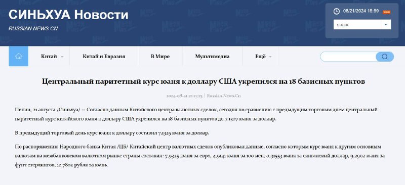 В предыдущий торговый день курс юаня к доллару составил 7,1325 юаня за доллар.