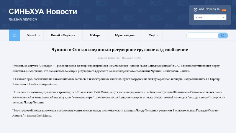 «Этот грузовой поезд также стал новым связующим звеном между экономическим кольцом Чэнду-Чунцин и регионом Большого залива Гуандун-Сянган-Аомэнь», — сказал Сюй Минь. /Фото: Синьхуа/
