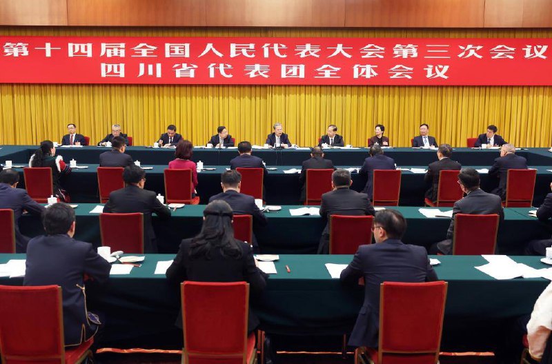 /Фото 2/ Председатель Постоянного комитета /ПК/ ВСНП Чжао Лэцзи принял участие в групповом обсуждении с депутатами из провинции Сычуань, призвав к более эффективным мерам для высококачественного осуществления целей и задач 14-го пятилетнего плана /2021-2025 гг./.