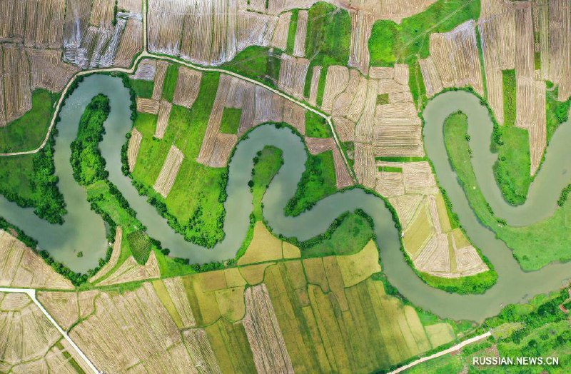 В островной провинции Хайнань /Южный Китай/ рисоводы в ясную погоду заняты сбором и сушкой летнего урожая скороспелого риса на полях, раскинутых на обоих берегах местной речки Саньшилюцюй под городом Хайкоу.