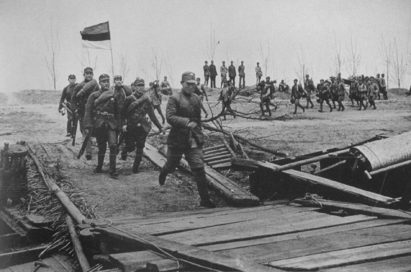 Π 1938 Π³. ΠΏΠ΅ΡΠ΅Π΄ Π±ΠΈΡΠ²ΠΎΠΉ Π·Π° Π’Π°ΠΉΡΡΡΠΆΡΠ°Π½ ΠΊΠΈΡΠ°ΠΉΡΠΊΠ°Ρ Π°ΡΠΌΠΈΡ Π½Π°Π²ΠΎΠ΄ΠΈΡ ΠΏΠΎΠ½ΡΠΎΠ½Π½ΡΠΉ ΠΌΠΎΡΡ Π½Π° ΡΠ΅ΠΊΠ΅, ΡΡΠΎΠ±Ρ Π²ΠΎΠΉΡΠΈ Π² Π±ΠΎΠ΅Π²ΠΎΠ΅ ΡΠΎΠΏΡΠΈΠΊΠΎΡΠ½ΠΎΠ²Π΅Π½ΠΈΠ΅ Ρ ΠΏΡΠΎΡΠΈΠ²Π½ΠΈΠΊΠΎΠΌ.
