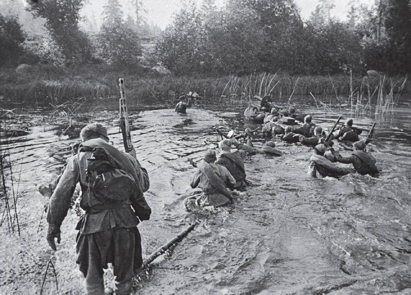 1943 Π³. ΠΠ°ΡΡΡΠΏΠ»Π΅Π½ΠΈΠ΅ Π½Π° Π‘Π΅Π²Π΅ΡΠΎ-ΠΠ°ΠΏΠ°Π΄Π½ΠΎΠΌ ΡΡΠΎΠ½ΡΠ΅. Π‘ΠΎΠ²Π΅ΡΡΠΊΠΈΠ΅ ΡΠΎΠ»Π΄Π°ΡΡ ΠΏΡΠ΅ΠΎΠ΄ΠΎΠ»Π΅Π²Π°ΡΡ ΡΠ΅ΡΠΊΡ Π²Π±ΡΠΎΠ΄.