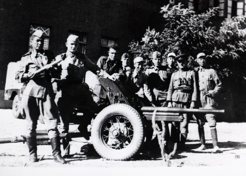 1945 Π³., ΠΊΠΎΠ½Π΅Ρ Π°Π²Π³ΡΡΡΠ°. ΠΡΡΡΠ΅ΡΠ° Π±ΠΎΠΉΡΠΎΠ² 8-ΠΉ Π°ΡΠΌΠΈΠΈ ΠΠΈΡΠ°Ρ ΠΈ ΡΠΎΠ²Π΅ΡΡΠΊΠΎΠΉ ΠΡΠ°ΡΠ½ΠΎΠΉ ΠΡΠΌΠΈΠΈ Π² ΡΠ°ΠΉΠΎΠ½Π΅ Π·Π°ΡΡΠ°Π²Ρ Π¨Π°Π½ΡΡ