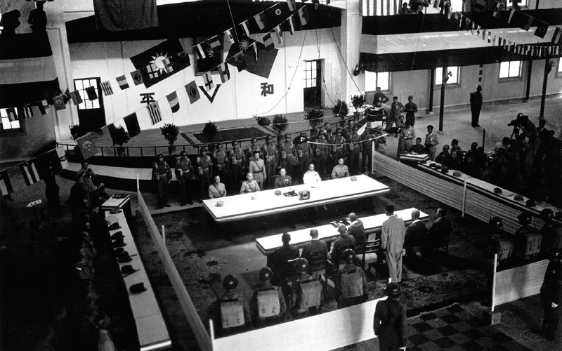 1945 Π³., 9 ΡΠ΅Π½ΡΡΠ±ΡΡ, ΠΠ°Π½ΠΊΠΈΠ½. Π¦Π΅ΡΠ΅ΠΌΠΎΠ½ΠΈΡ ΠΏΠΎΠ΄ΠΏΠΈΡΠ°Π½ΠΈΡ ΠΠΊΡΠ° ΠΎ ΠΊΠ°ΠΏΠΈΡΡΠ»ΡΡΠΈΠΈ ΡΠΏΠΎΠ½ΡΠΊΠΎΠΉ Π°ΡΠΌΠΈΠΈ. ΠΠ»Π°Π²Π½ΠΎΠΊΠΎΠΌΠ°Π½Π΄ΡΡΡΠΈΠΉ ΡΠΏΠΎΠ½ΡΠΊΠΎΠΉ Π°ΡΠΌΠΈΠΈ Π² ΠΠΈΡΠ°Π΅ Π―ΡΡΠ΄Π·ΠΈ ΠΠΊΠ°ΠΌΡΡΠ° (Yasuji Okamura) ΠΏΠΎΠ΄ΠΏΠΈΡΡΠ²Π°Π΅Ρ ΠΠΊΡ ΠΎ ΠΊΠ°ΠΏΠΈΡΡΠ»ΡΡΠΈΠΈ.