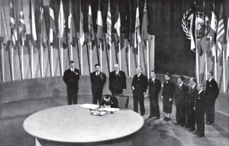 1945 Π³., 26 ΠΈΡΠ½Ρ. ΠΠ»Π°Π²Π½ΡΠΉ ΠΏΡΠ΅Π΄ΡΡΠ°Π²ΠΈΡΠ΅Π»Ρ ΠΊΠΈΡΠ°ΠΉΡΠΊΠΎΠΉ Π΄Π΅Π»Π΅Π³Π°ΡΠΈΠΈ ΠΡ ΠΡΠΉΡΠ·ΡΠ½Ρ ΡΡΠ°Π²ΠΈΡ ΡΠ²ΠΎΡ ΠΏΠΎΠ΄ΠΏΠΈΡΡ ΠΏΠΎΠ΄ Π£ΡΡΠ°Π²ΠΎΠΌ ΠΠΠ.