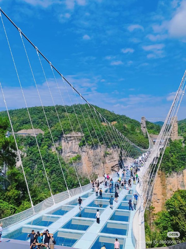 Длина моста Чжанцзяцзе составляет 430 метров, а высота около 300 метров. Мост является непревзойденным искусственным чудом, это самый длинный и самый высокий стеклянный мост в мире. Стекло настолько прочное, что вмешает одновременно до 800 посетителей. С моста открывается прекрасный вид на Национальный лесной парк Чжанцзяцзе. На дне ущелья находится озеро Укай, в котором вода приобретает ярко-бирюзовый цвет, что объясняется отражением камней и водорослей на дне озера.