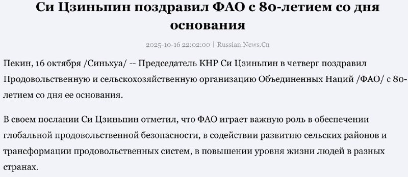 Π ΡΠ²ΠΎΠ΅ΠΌ ΠΏΠΎΡΠ»Π°Π½ΠΈΠΈ Π‘ΠΈ Π¦Π·ΠΈΠ½ΡΠΏΠΈΠ½ ΠΎΡΠΌΠ΅ΡΠΈΠ», ΡΡΠΎ Π€ΠΠ ΠΈΠ³ΡΠ°Π΅Ρ Π²Π°ΠΆΠ½ΡΡ ΡΠΎΠ»Ρ Π² ΠΎΠ±Π΅ΡΠΏΠ΅ΡΠ΅Π½ΠΈΠΈ Π³Π»ΠΎΠ±Π°Π»ΡΠ½ΠΎΠΉ ΠΏΡΠΎΠ΄ΠΎΠ²ΠΎΠ»ΡΡΡΠ²Π΅Π½Π½ΠΎΠΉ Π±Π΅Π·ΠΎΠΏΠ°ΡΠ½ΠΎΡΡΠΈ, Π² ΡΠΎΠ΄Π΅ΠΉΡΡΠ²ΠΈΠΈ ΡΠ°Π·Π²ΠΈΡΠΈΡ ΡΠ΅Π»ΡΡΠΊΠΈΡ