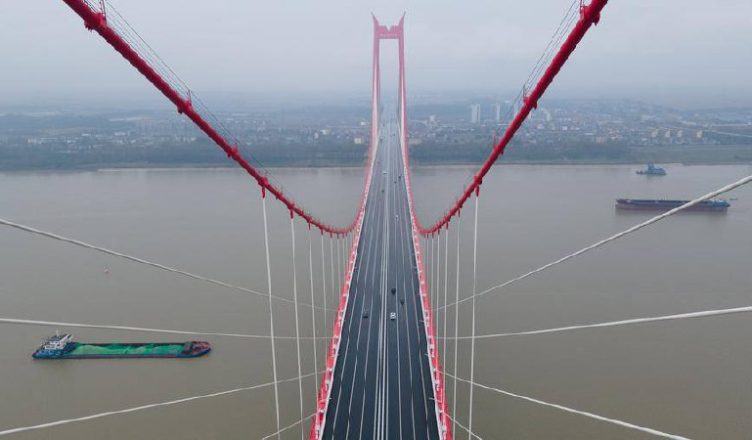 Первый в Китае двухъярусный вантовый подвесной мост через реку Янцзы открыт для движения транспорта в провинции Аньхой Первый в Китае двухъярусный вантовый подвесной мост был открыт для движения транспортных средств в четверг в городе Тунлин / пров. Аньхой, Восточный Китай/. Он стал третьим в Тунлине мостом через Янцзы и 11-м по счету на аньхойском участке крупнейшей реки Китая.